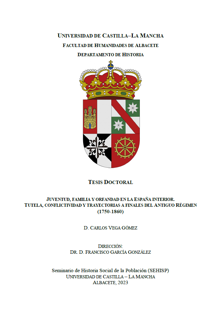 Nuestro compañero Carlos Vega Gómez ha sido galardonado con el I Premio “Globalcaja” 2025 a tesis defendidas en la UCLM, un merecido reconocimiento a su gran tesis doctoral titulada Juventud, familia y orfandad en la España interior. Tutela, conflictividad y trayectorias a finales del Antiguo Régimen (1750-1860), dirigida por Francisco García González.